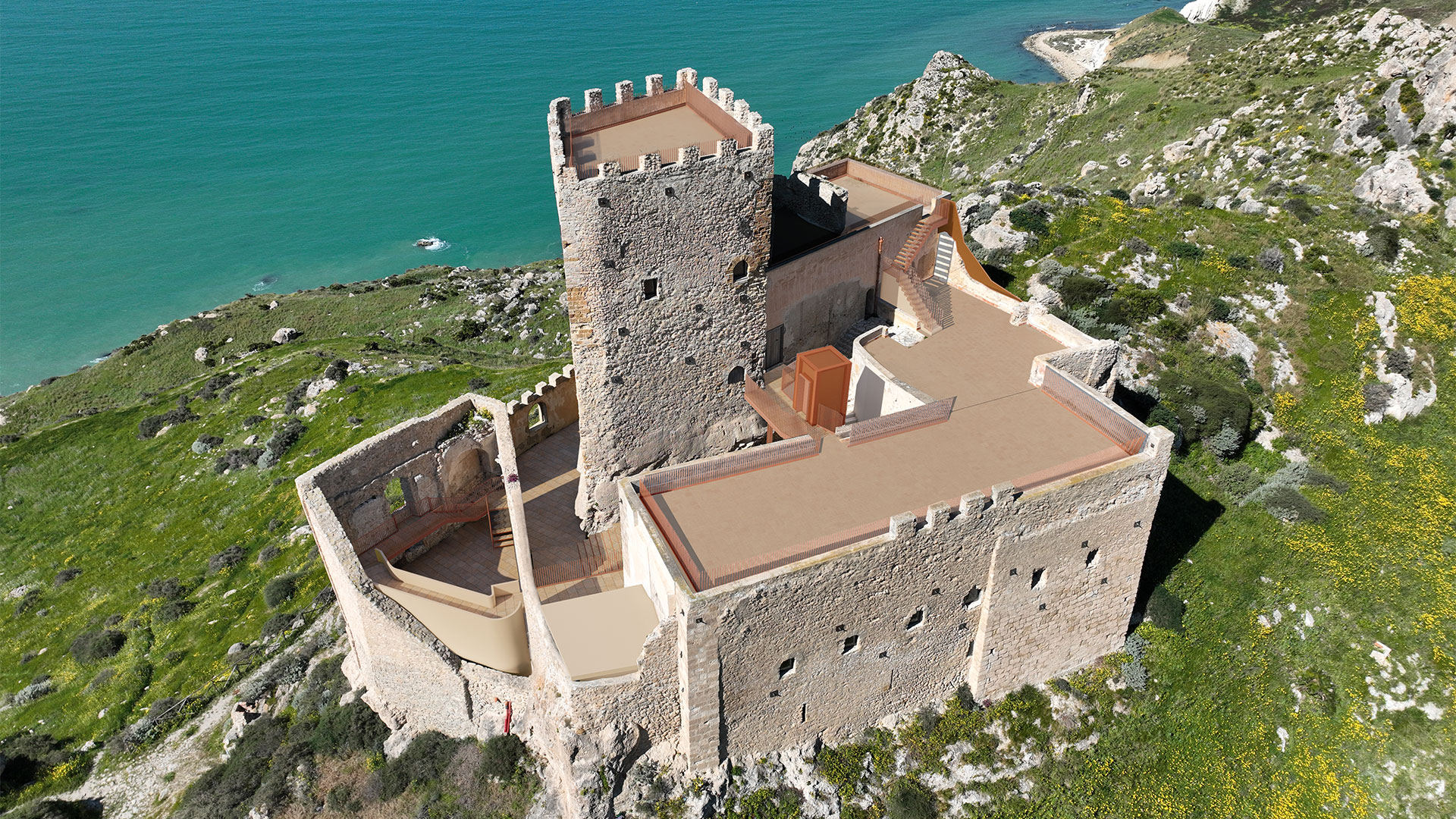 Intervento di Restauro e messa in sicurezza, progettazione degli spazi attigui funzionali, creazione di un belvedere sul Mediterraneo, illuminazione artistica dei luoghi e pista ciclabile che conduce al castello